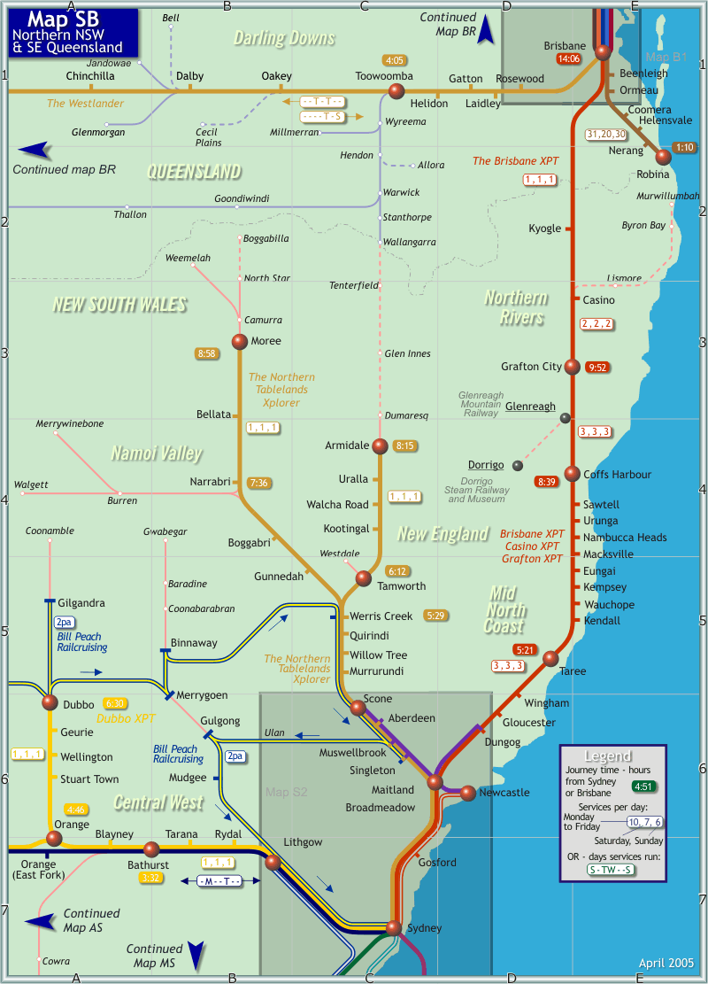 Map SB - Rail map of Northern and Western New South Wales and S-E Queensland